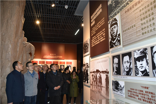 在紀念館,公司總經理助理祁紅軍帶領大家參觀了星火燎原土地革命戰爭廳、抗日戰爭廳、解放戰爭廳等,瞻仰了吉鴻昌、楊靖宇、葉成煥、彭雪楓、焦裕祿、任長霞等先烈們的英模,學習了先烈們一段段可歌可泣的英勇事跡。一件件珍貴的革命文物,一張張感人的歷史圖片,一個個震撼人心的故事,一幕幕驚心動魄的戰斗場景,再現了中國共產黨在中原地區所經歷的艱難歷程和當年抗戰的烽火歲月,再現了中原軍民同仇敵愾、浴血奮戰的歷史畫卷,同時也再現了吉鴻昌、楊靖宇、彭雪楓等中原革命先烈的英雄事跡,以及焦裕祿、任長霞等新時期為人民幸福社會發展英勇獻身的英雄形象。